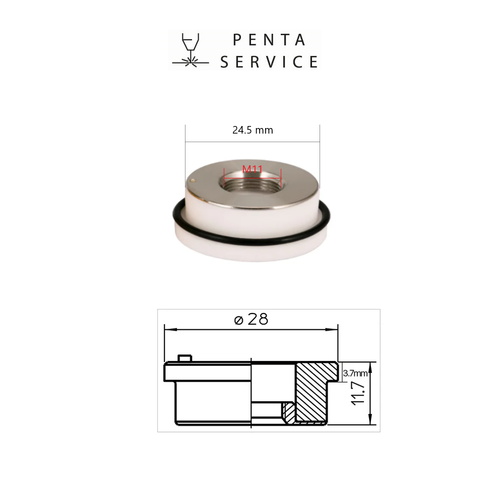Держатель сопла предназначен для работы в качестве изолятора для корректной работы датчика слежения за поверхностью. Керамическая проставка является держателем сопла диаметром 28 мм. Выполняет изоляционные функции, препятствует нагреванию нижних частей лазерной головки.